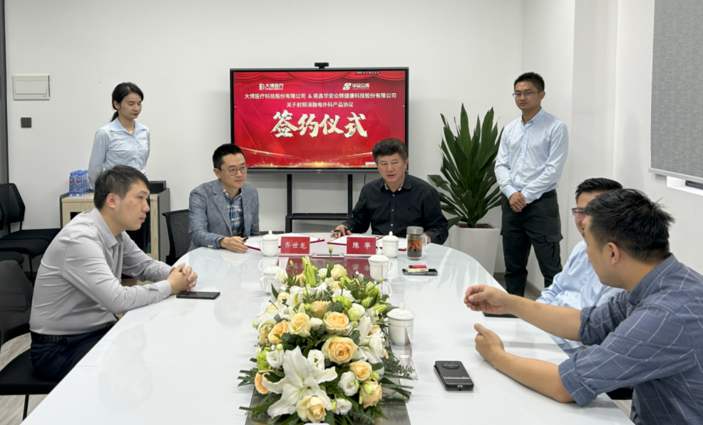 在签约仪式上,,,,,,,大博医疗和NLC电子(中国)集团双方均体现,,,,,,,作为研发立异型企业,,,,,,,双方具有互补优势,,,,,,,且团队契合度高,,,,,,,相助意愿强烈。。。。。。。通过此次战略相助,,,,,,,大博医疗和NLC电子(中国)集团将实现强强团结,,,,,,,充分验展各自的产品和渠道优势,,,,,,,增进射频消融电外科产品的研发、生产和销售相助,,,,,,,推动双方在行业内的竞争力,,,,,,,为医疗行业的久远生长注入新的活力。。。。。。。