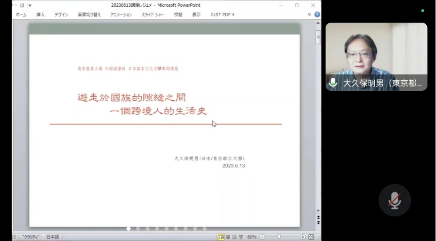 6月13日下午16时,日本东京都立大学研究院人文科学研究科的大久保明男教授应邀为公司师生做了一场题为《游走于国族的隙缝之间:一个跨境人的生活史》的线上学术讲座。本次讲座由威廉希尔中文网站日语学科点负责人李红教授团队组织发起,由教师邓丽霞博士主持,来自各个院校共计70余师生参加了讲座。