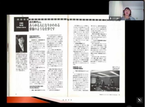 会上,古川典代首先分享了近年来日本的中文口译和口译教育现状,以及跨学科复合型人才培养的困难。随后,古川教授介绍了日常工作中常用的口译训练方法、日本各所大学、培训机构设置中文专业、中文口译课程的情况、以及日本中文等级鉴定考试现状等,并从报酬、需求等方面归纳了当下日本中文口译发展所面临的问题。最后,古川教授分享了自己与中文的不解之缘。